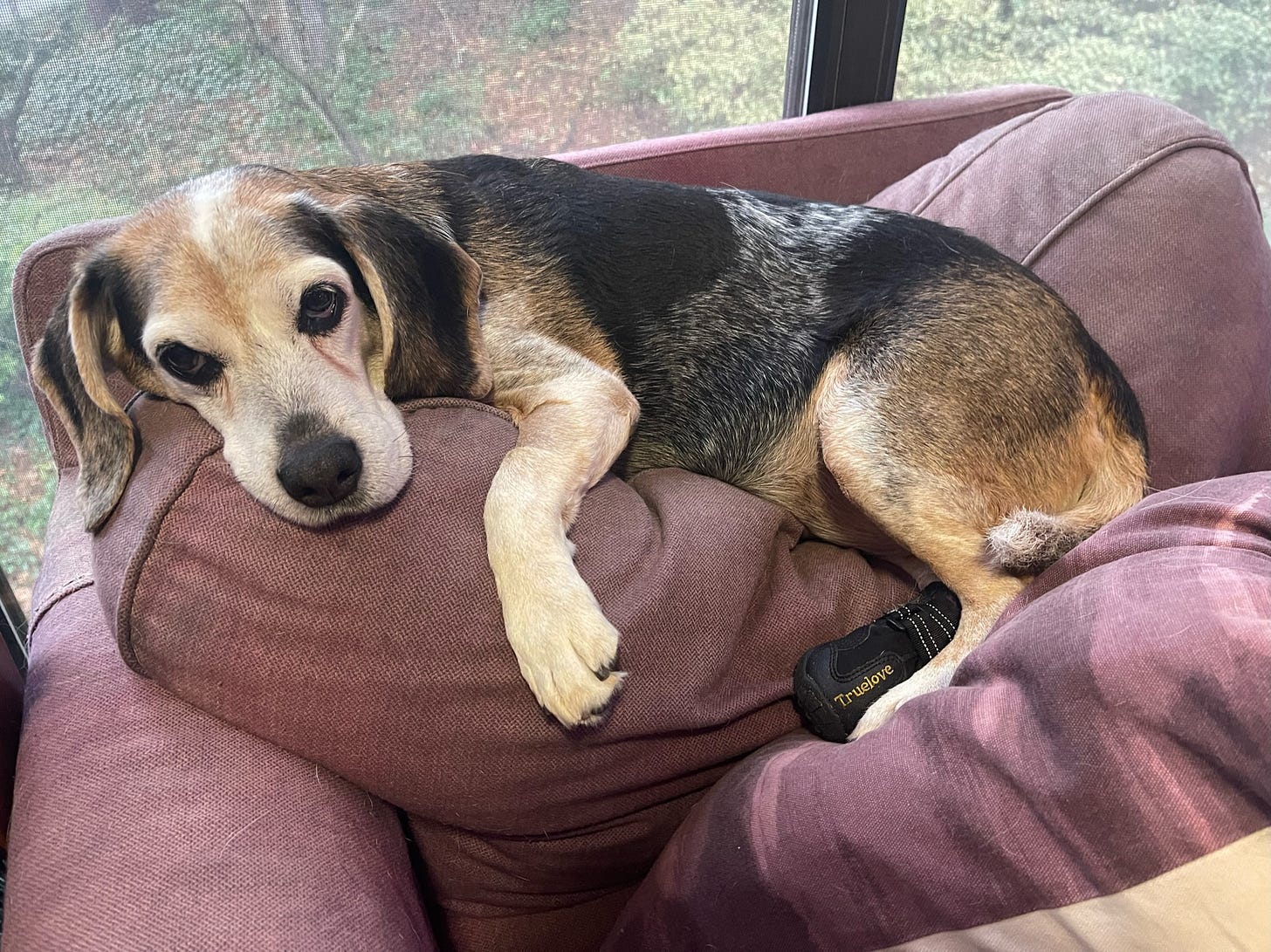 When we started planning our move to Costa Rica two years ago, we knew there was a chance that Raider wouldn’t live long enough to come with us. As our target moving date in October 2023 drew closer, the logistics of transporting an anxious, elderly dog internationally became one of our biggest stressors. We also knew our lazy little pig wouldn’t be well-suited to the Costa Rican lifestyle (our younger beagle Hamilton, on the other hand, will make an enthusiastic member of the local congreso de perros). So while losing Raider was sudden–if not completely unexpected–and we weren’t quite ready to say goodbye to our sweet girl, there’s nevertheless a strange sense of closure from the universe.